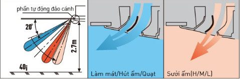 - Tự động điều khiển cánh đảo: Tự động điều chỉnh lưu lượng gió theo những chế độ vận hành (làm lạnh hay sưởi ấm) khác nhau.