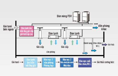 - Hệ thống cấp gió tươi áp cao cho phép cung cấp không khí tươi từ bên ngoài ở mức nhiệt độ và độ ẩm gần như không đổi như không khí trong nhà mà không khiến điều hòa không khí vận hành quá mức