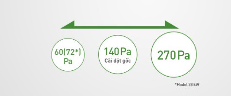 - Thiết kế linh hoạt nhờ vào lưu lượng gió và cột áp lớn: Thiết lập cột áp 3 chế độ 270 Pa/ 140 Pa/ 60 Pa để cài đặt linh hoạt hơn