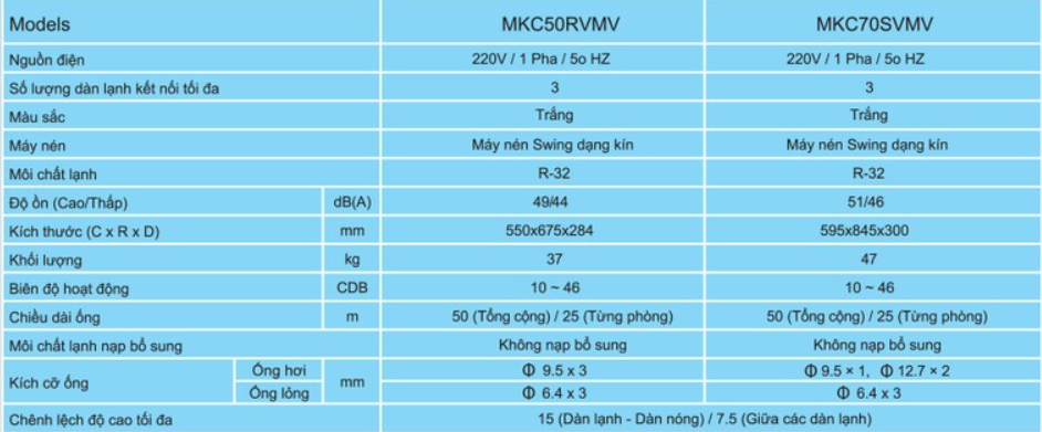 Điều hòa Daikin multi S MKC50RVMV loại dàn nóng 1 chiều lạnh, công suất 18000BTU, sử dụng gas R32, kết nối tối đa 3 dàn lạnh công nghệ Nhật, sản xuất nhập khẩu chính hãng Thái Lan.