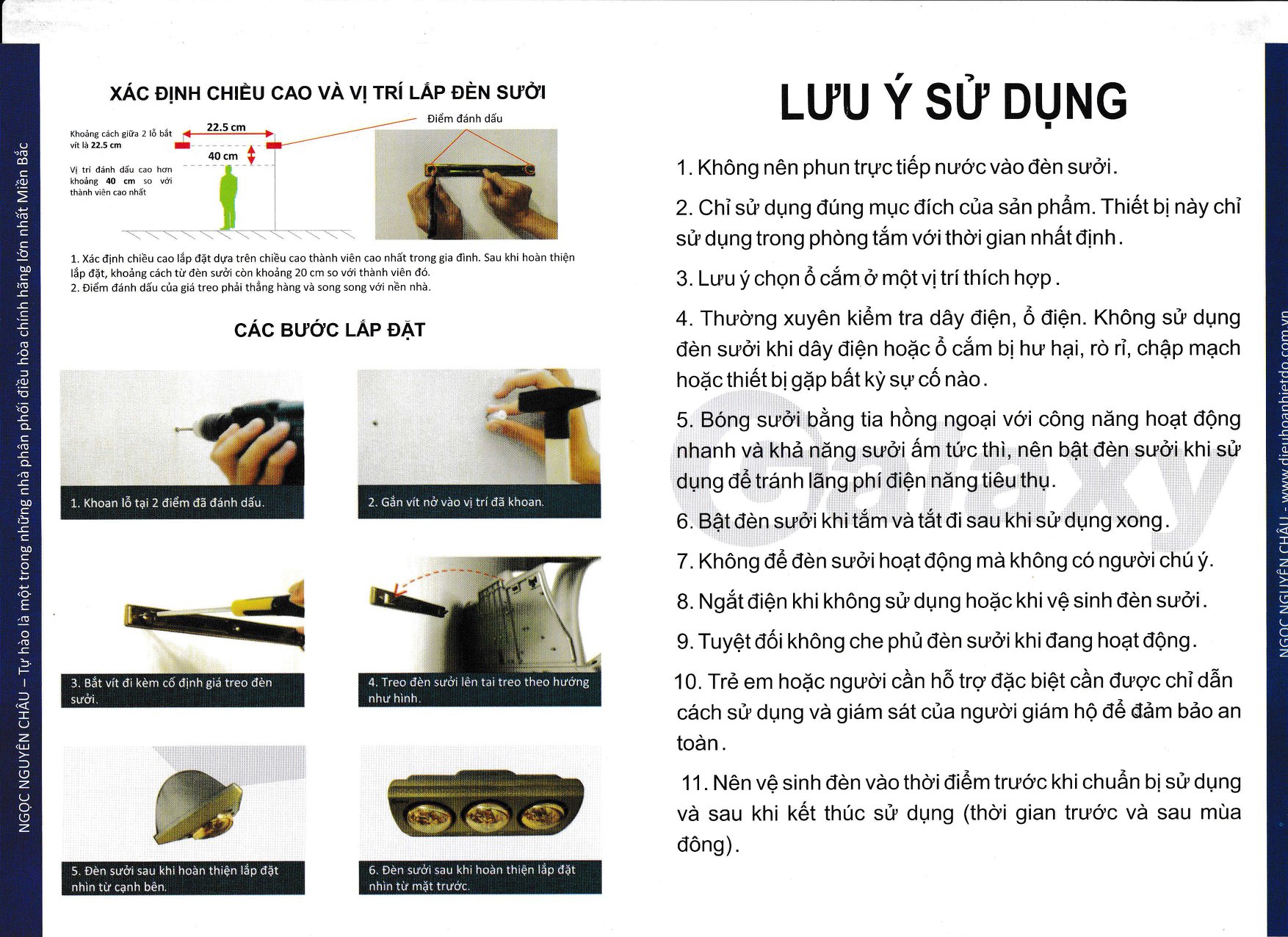 - Chỉ nên sử dụng đúng mục đích của sản phẩm. Thiết bị này chỉ sử dụng trong phòng tắm với thời gian nhất định, không phải sản phẩm sưởi ấm trong thời gian dài hàng ngày.
