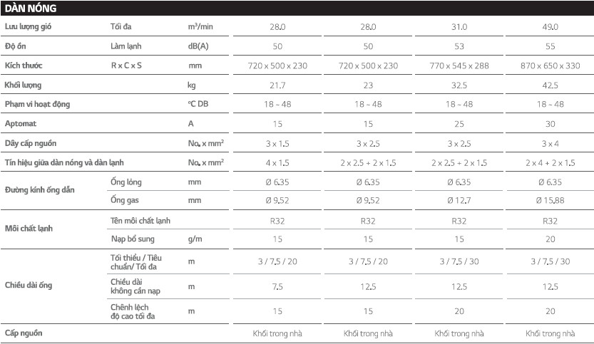 - Hạn chế lắp dàn nóng / cục nóng phải dùng đến thang dây giúp cho bảo dưỡng định kỳ, bảo hành dễ dàng hơn;