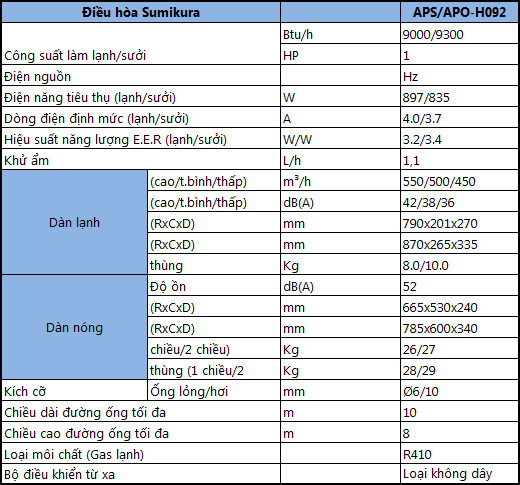 APS/APO-H092 Titan có công suất làm lạnh/sưởi 9000BTU vừa đủ để điều hòa không khí trong một căn phòng có diện tích 10 – 15m2