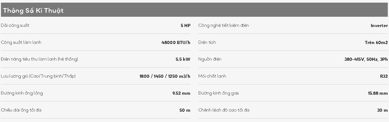 Với công suất điều hòa âm trần 48000BTU (5HP), Casper CC-48IS35 lựa chọn tuyệt vời cho những không gian như phòng khách, phòng họp, nhà ăn hoặc phòng làm việc, …dưới 80m2.