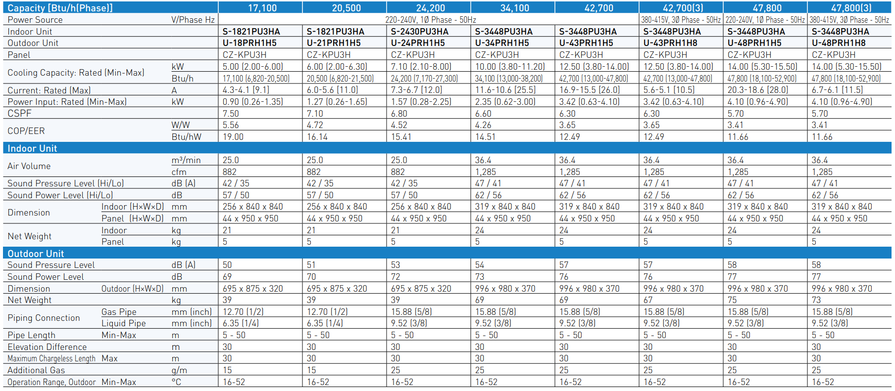 Cánh đảo gió chính và cánh đảo gió phụ rộng hơn giúp tăng luồng khí và cổng phun với góc rộng hơn tạo ra luồng khí dài hơn. Hơi lạnh có thể vươn tới từ độ cao tối đa 5 mét, khiến cho cả những không gian có trần cao và không gian mở đều cảm thấy dễ chịu.