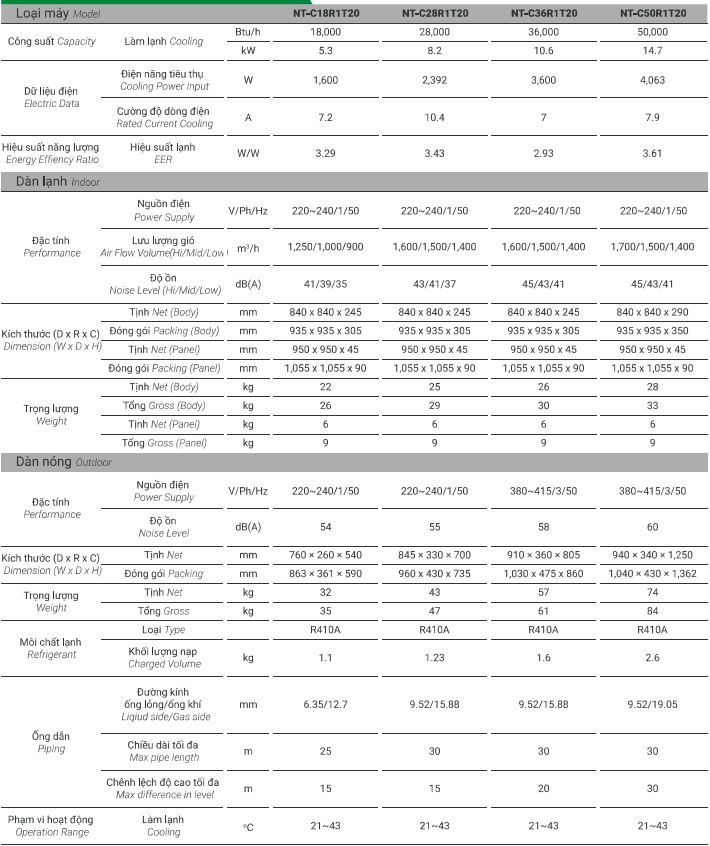 NT-C36R1T20 được tích hợp thêm bơm nước ngưng giúp việc lắp đặt hiệu quả và linh hoạt hơn, đặc biệt khi đường nước xả dài.