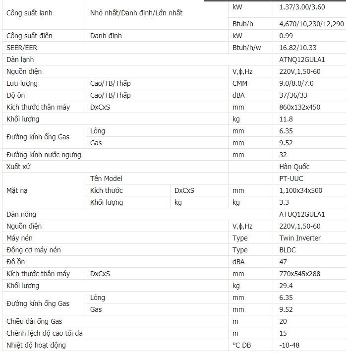 Thương hiệu LG đã quá nổi tiếng tại thị trường Việt Nam trong lĩnh vực điện tử, điện lạnh. Bạn đã từng bắt gặp ở bất cứ nơi đâu sự hiện diện của tivi, tủ lạnh, điều hòa LG. Thương hiệu LG là một trong hai thương hiệu lớn nhất của Hàn Quốc trong lĩnh vực điện tử điện lạnh, điện dân dụng. Điều hòa âm trần LG 1 chiều inverter 12.000BTU ATNQ12GULA1 là 1 trong 3 Model máy điều hòa âm trần 1 hướng thổi của hãng LG được ra mắt vào năm 2019.