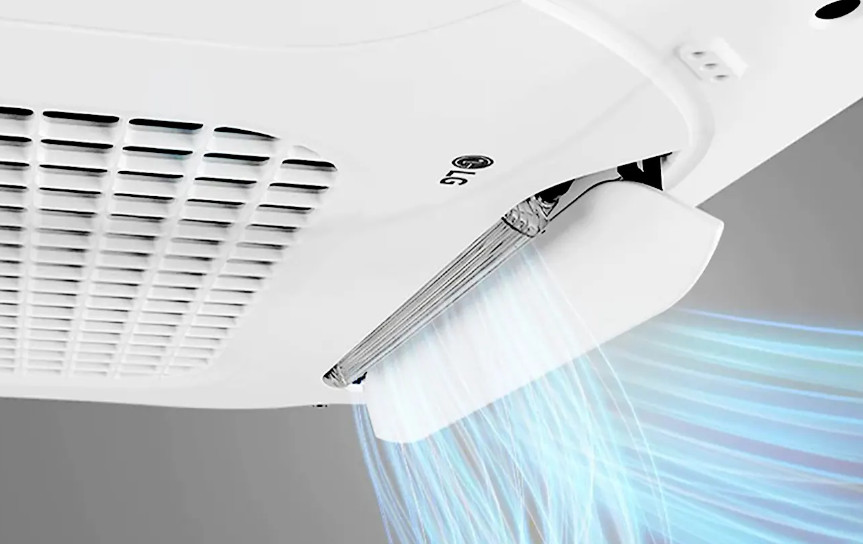 Cơ chế thổi gió của điều hòa âm trần giúp hơi lạnh được lan tỏa đồng đều đến 4 hướng trong không gian nhờ đó mang đến cảm giác thoải mái dễ chịu cho người sử dụng. Trong quá trình hoạt động điều hòa có thể làm mát từ độ cao 4.2m với lưu lượng gió thổi lớn, cho phép luồng khí lạnh tỏa đều khắp phạm vi làm mát.