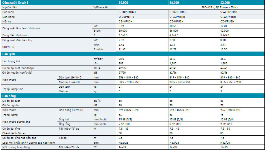 Ưu điểm kỹ thuật Điều hòa âm trần 1 chiều 36.000BTU S-36PU1H5B/U-36PN1H8 (3 Pha)