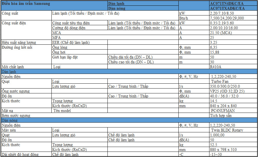 Điều hòa âm trần Samsung thương hiệu hàng đầu Hàn Quốc, sản xuất Trung Quốc