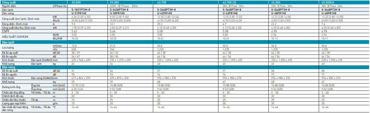 • 1 chiều - 45.500BTU (5.5HP) - Gas R32 - 3 Pha