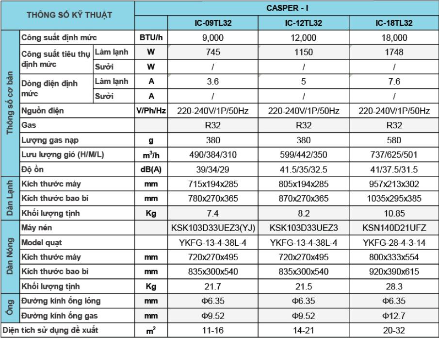 Điều hòa Casper 1 chiều 12000BTU Inverter IC-12TL32
