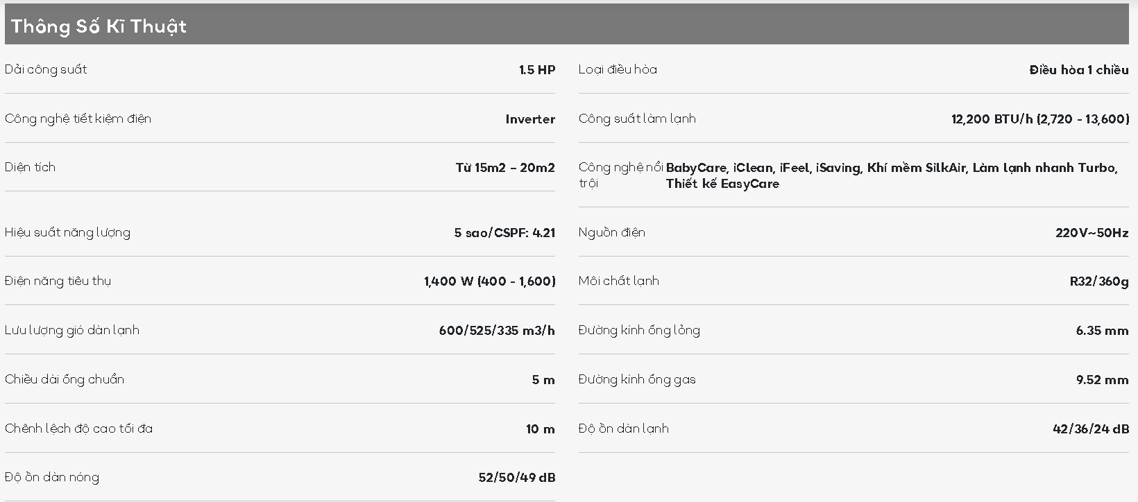 Chế độ BabyCare tận dụng sự hoạt động nhẹ nhàng của SilkAir, duy trì khả năng vận hành êm ái và tạo luồng khí mát êm dịu, đưa trẻ nhỏ vào giấc ngủ ngon và thức dậy sảng khoái.