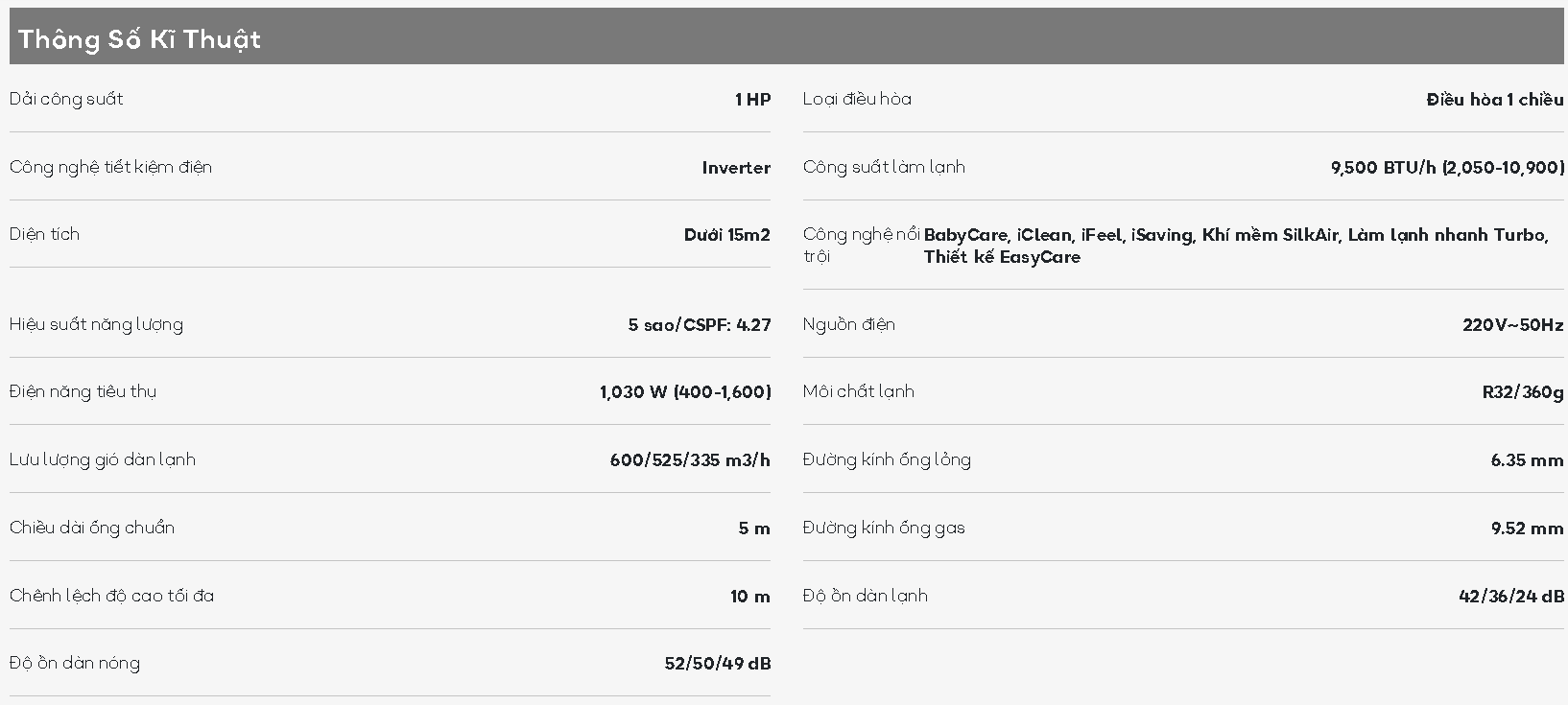 Chế độ BabyCare tận dụng sự hoạt động nhẹ nhàng của SilkAir, duy trì khả năng vận hành êm ái và tạo luồng khí mát êm dịu, đưa trẻ nhỏ vào giấc ngủ ngon và thức dậy sảng khoái.