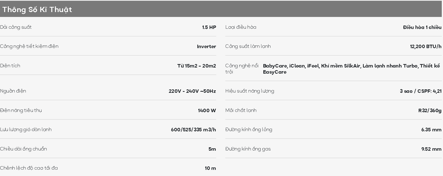 Chế độ BabyCare tận dụng sự hoạt động nhẹ nhàng của SilkAir, duy trì khả năng vận hành êm ái và tạo luồng khí mát êm dịu, đưa trẻ nhỏ vào giấc ngủ ngon và thức dậy sảng khoái.