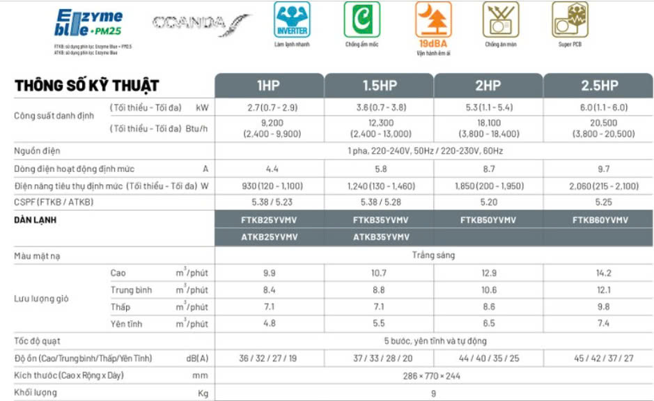 19dB(A) : như tiếng thì thầm. Chỉ có trên dòng FTKB25