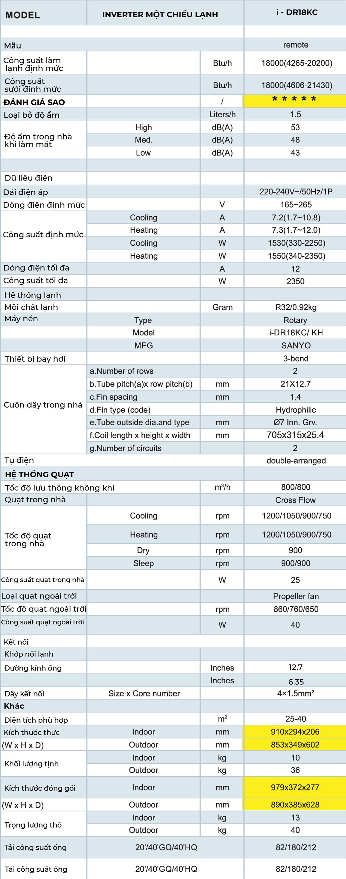 Điều hòa Dairry Inverter 18000BTU 1 chiều i-DR18-KC