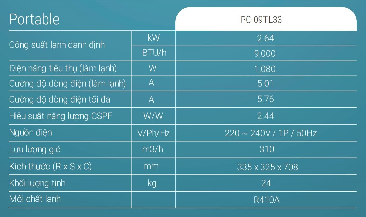 Với công suất 9000BTU, điều hòa di động Casper PC-09TL33 giúp bạn tận hưởng không gian mát lạnh sảng khoái...phù hợp lắp đặt cho không gian phòng có diện tích < 15m2.