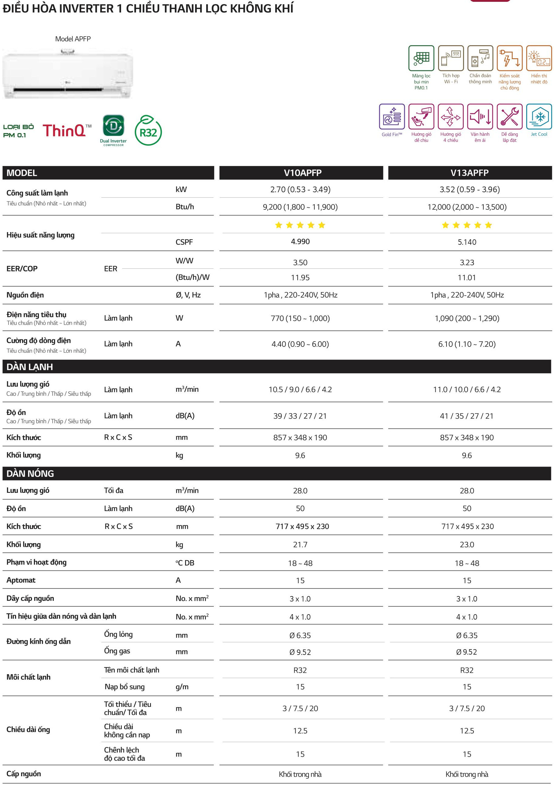 Điều hòa Inverter Thanh lọc không khí 1 chiều 9000BTU (1HP) V10APFP