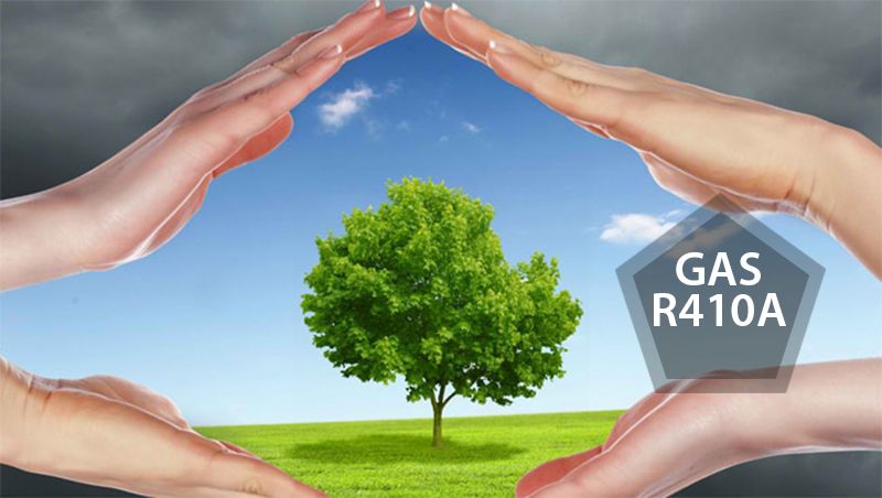 Sử dụng Gas R410A thân thiện với môi trường, không phá hủy tầng ozone trong không khí. Phần lớn các điều hòa thông thường hiện nay trên thị trường đang sử dụng gas lạnh giá rẻ R22, loại gas được chứng minh là có nguy cơ gây thủng tầng ozone và gây hiệu ứng nhà kính. Với mục tiêu cắt giảm lượng khí thải, gas R410A được phát minh ra để thay thế cho loại gas R22 và nó hoàn toàn đáp ứng được yêu cầu về loại gas điều hòa thân thiện và bảo vệ môi trường.