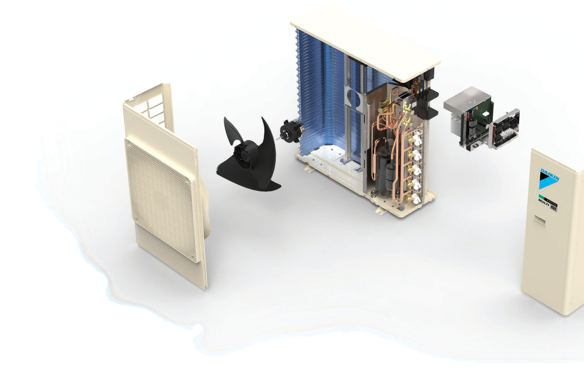 + Máy nén Swing mạnh mẽ và yên tĩnh - Daikin đã phát triển các máy nén Swing mạnh mẽ với một buồng nén và dầu bôi trơn hiệu suất cao, cho phép động cơ hoạt động trơn tru và hiệu quả mà không gây tiếng ồn.