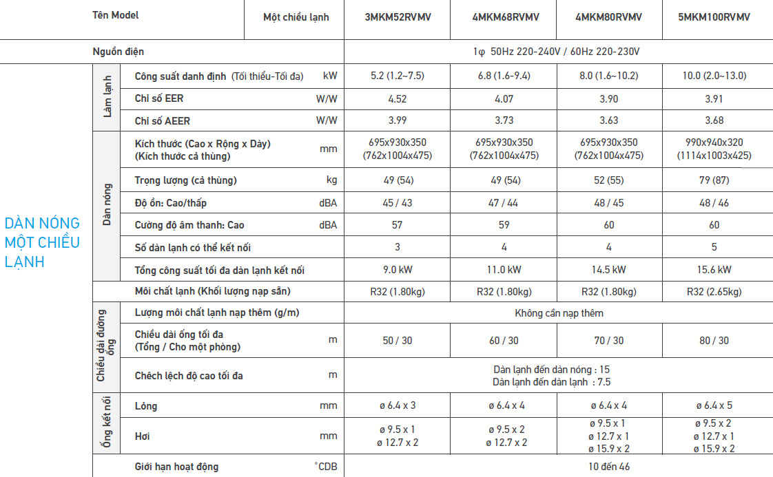 Dàn nóng điều hòa Multi Daikin 1 chiều Inverter 4MKM80RVMV