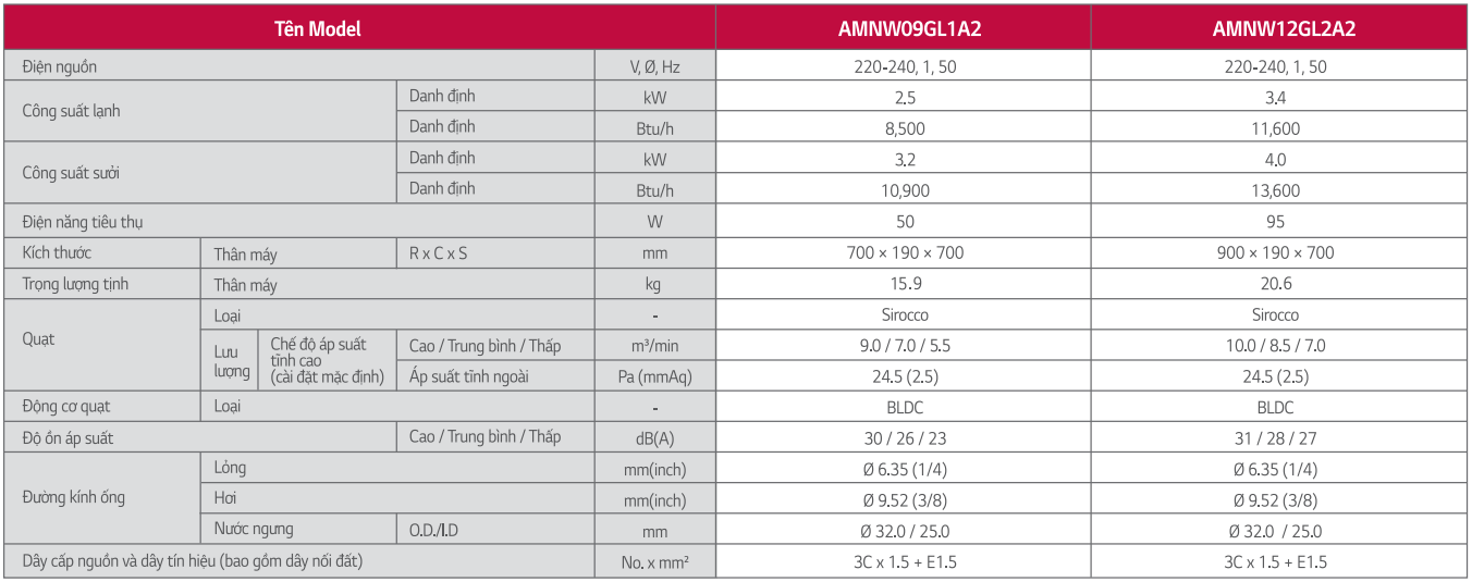 Dàn lạnh nối ống gió điều hòa multi LG 2 chiều 12000BTU AMNW12GL2A2 chính hãng giá rẻ, làm lạnh mùa hè sưởi ấm mùa đông. Điều hòa công nghệ Smart inverter siêu tiết kiệm điện, hoạt động siêu êm và bền bỉ, nhập khẩu chính hãng Thái Lan
