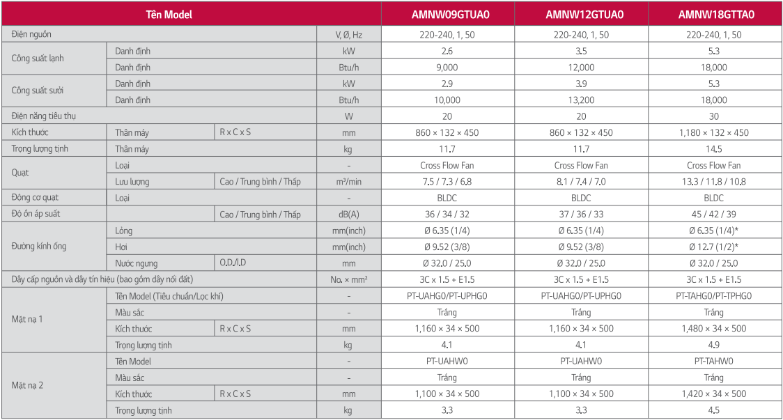 Multi LG AMNW12GTUA0 + PT-UAHW0 thiết kế tinh tế.