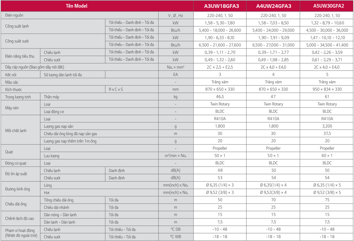 Dàn nóng điều hòa multi LG 2 chiều A3UW18GFA3 là dòng máy điều hòa 2 chiều lạnh / sưởi ấm, công suất 18.000BTU, với thiết kế nhỏ gọn, linh hoạt trong lắp đặt tiết kiệm không gian, mang lại vẻ thoáng đãng cho nội thất ngôi nhà bạn. Đặc biệt phù hợp cho các căn hộ chung cư có không gian ban công chật hẹp. Đi kèm với những đặc điểm trên, dòng điều hòa này còn sở hữu những tính năng hiện đại, nổi bật như sau: