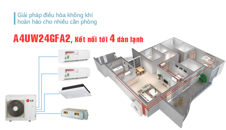 Dàn nóng điều hòa multi LG A4UW24GFA2 không chỉ tiết kiệm không gian lắp đặt mà còn vận hành siêu êm dịu không gây ra tiếng ồn cho gia đình bạn .