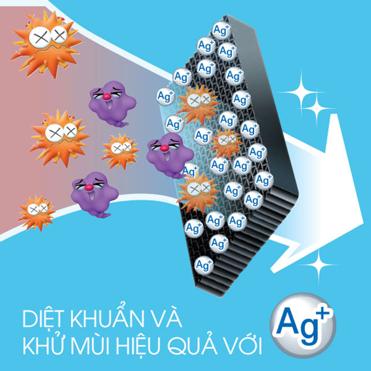 Bộ Nano(Ag+) : Nano Ag + có thể phá hủy tới 99% hệ thống tế bào của vi khuẩn, mang lại cho chúng ta một bầu không khí tươi mới trong khoảng thời gian dài.