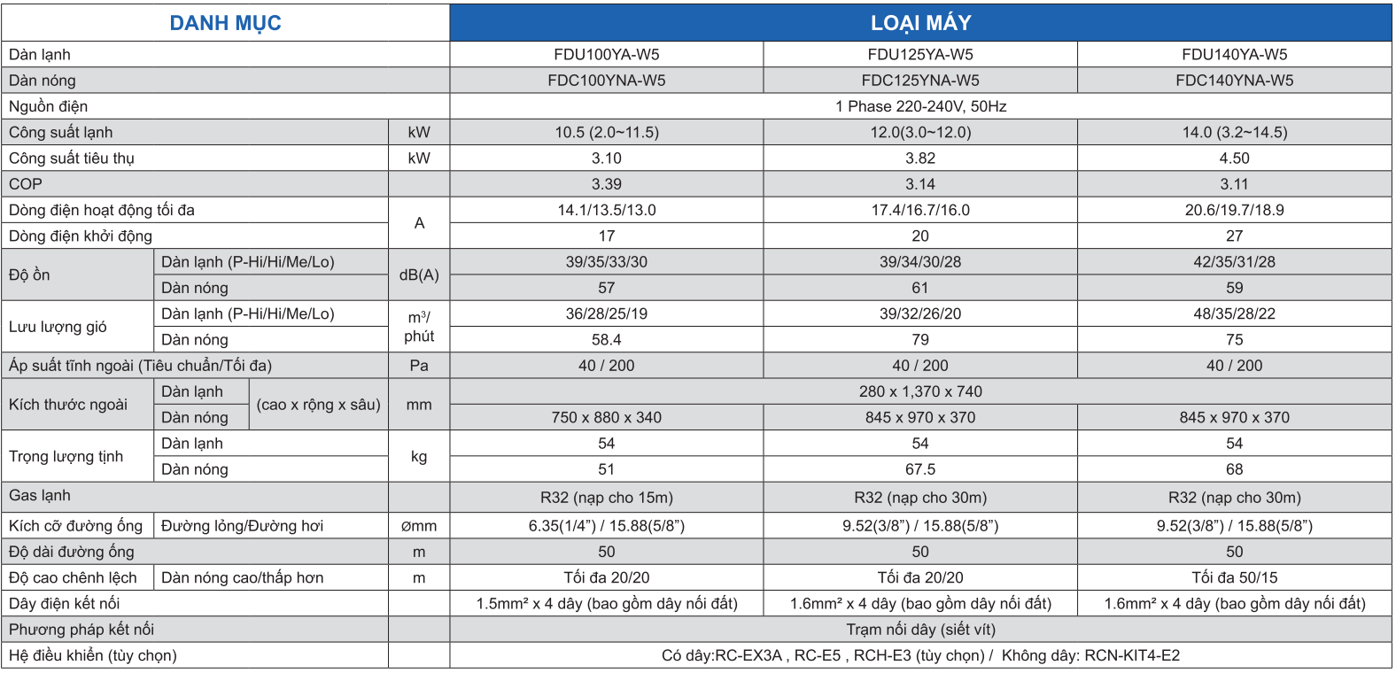 • 1 chiều - 50000BTU (14.0KW) - 1 pha - Gas R32