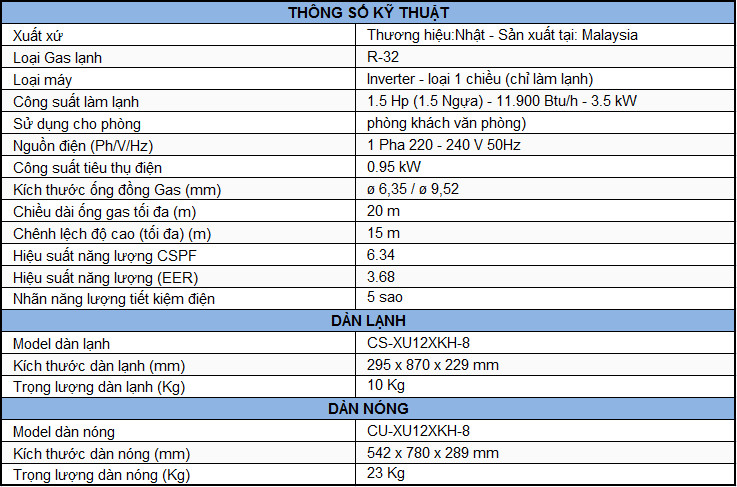 Điều hòa Panasonic 1 chiều Inverter 11900 BTU CU/CS-XU12XKH-8