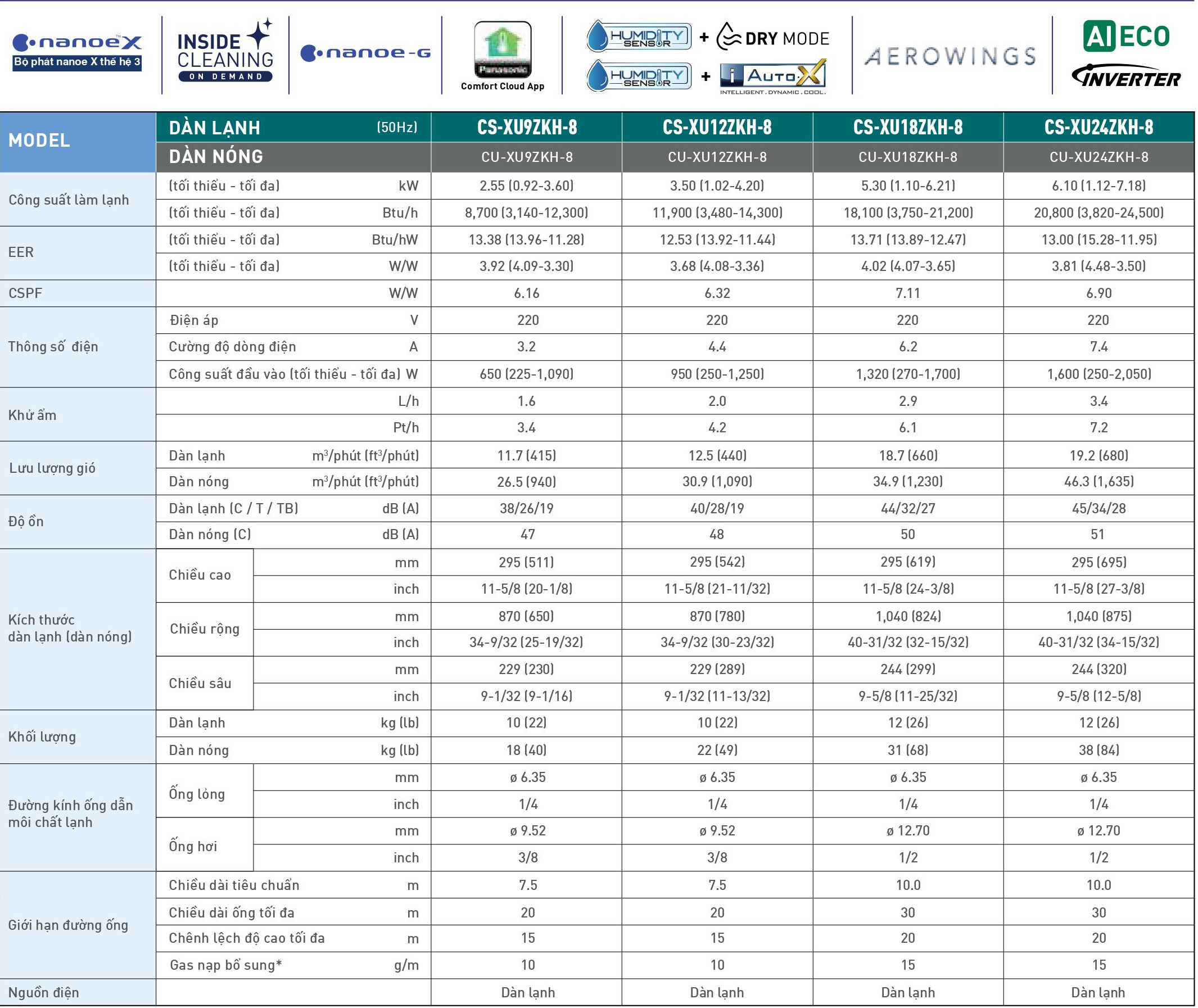 Panasonic 2023 cho ra dòng sản phẩm mới XU18ZKH-8 với công nghệ Inside Cleaning - giúp hong khô bên trong dàn lạnh trong quá trình sử dụng, đồng thời giải phóng các hạt nanoeTM X giúp ức chế các tác nhân gây ô nhiễm nhằm bảo vệ không khí liên tục trong 24 giờ.