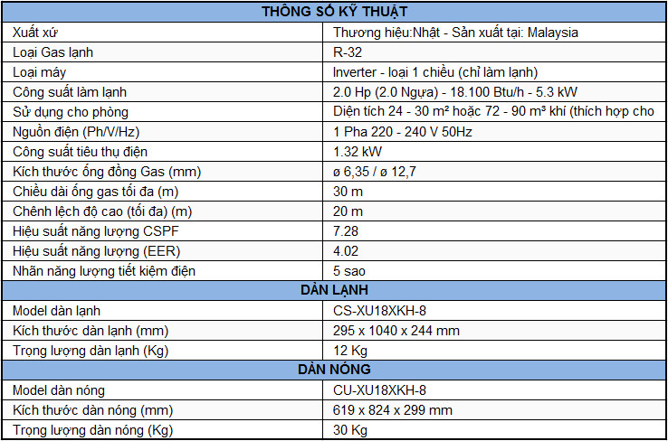 Máy lạnh Panasonic Inverter 2 HP CU/CS-XU18XKH-8 được thiết kế đơn giản với kiểu dáng tinh tế, màu sắc trang nhã, phù hợp với mọi không gian nội thất của gia đình Việt.