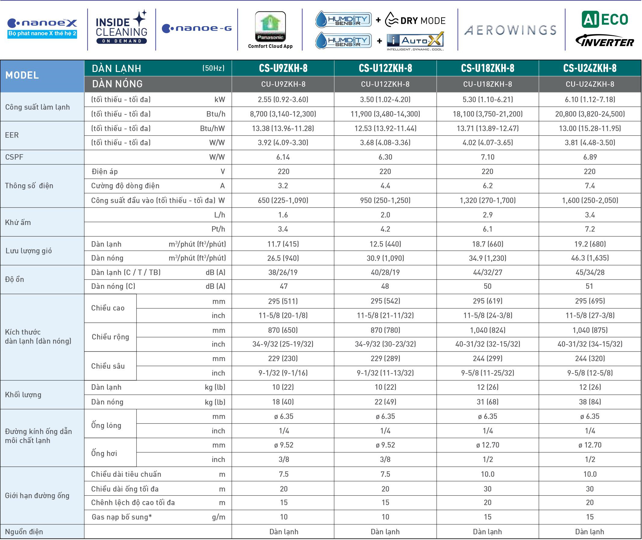 Năm 2023, Panasonic cho ra dòng sản phẩm mới CS/CU-U18ZKH-8 với công nghệ Inside Cleaning - giúp hong khô bên trong dàn lạnh trong quá trình sử dụng, đồng thời giải phóng các hạt nanoeTM X giúp ức chế các tác nhân gây ô nhiễm nhằm bảo vệ không khí liên tục trong 24 giờ.