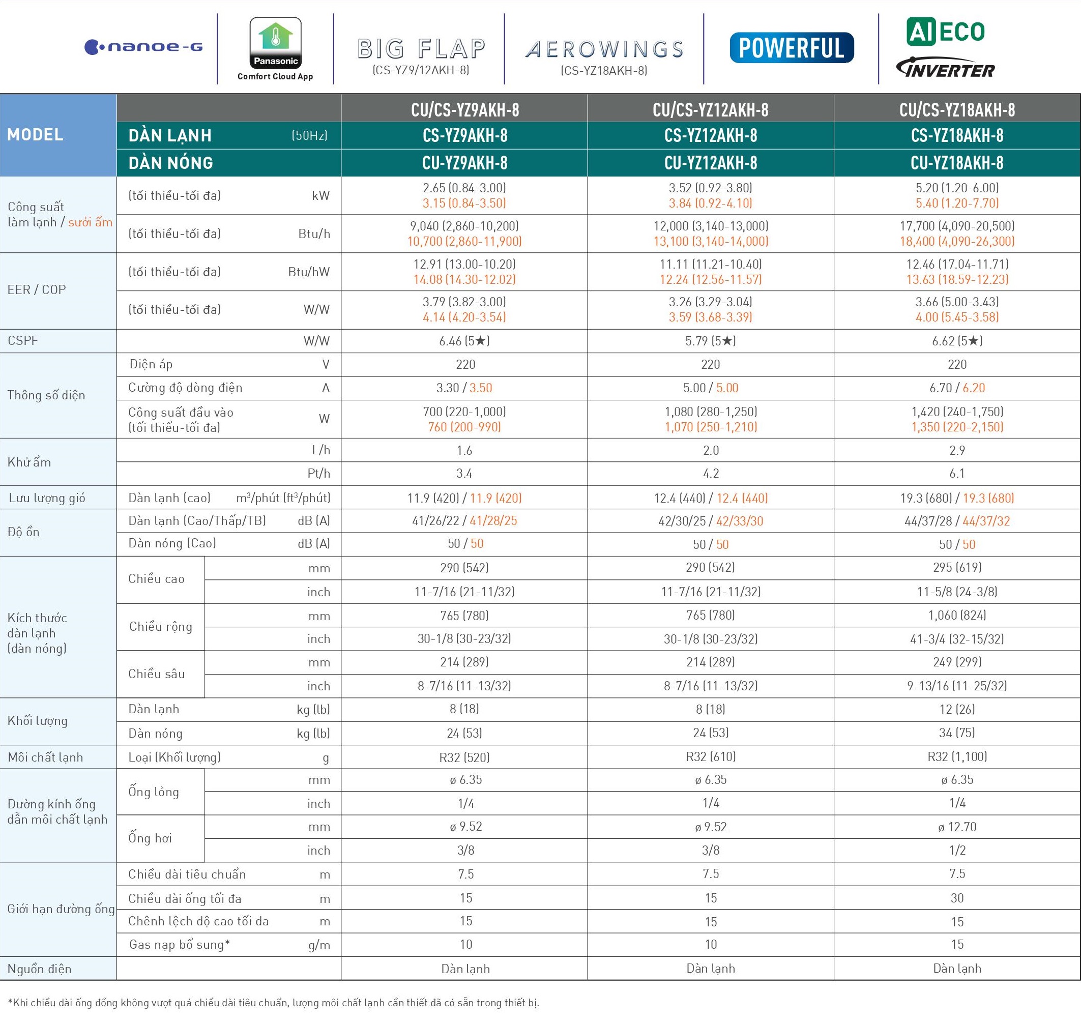 Điều hòa 2 chiều Panasonic Inverter tiêu chuẩn – YZ Series