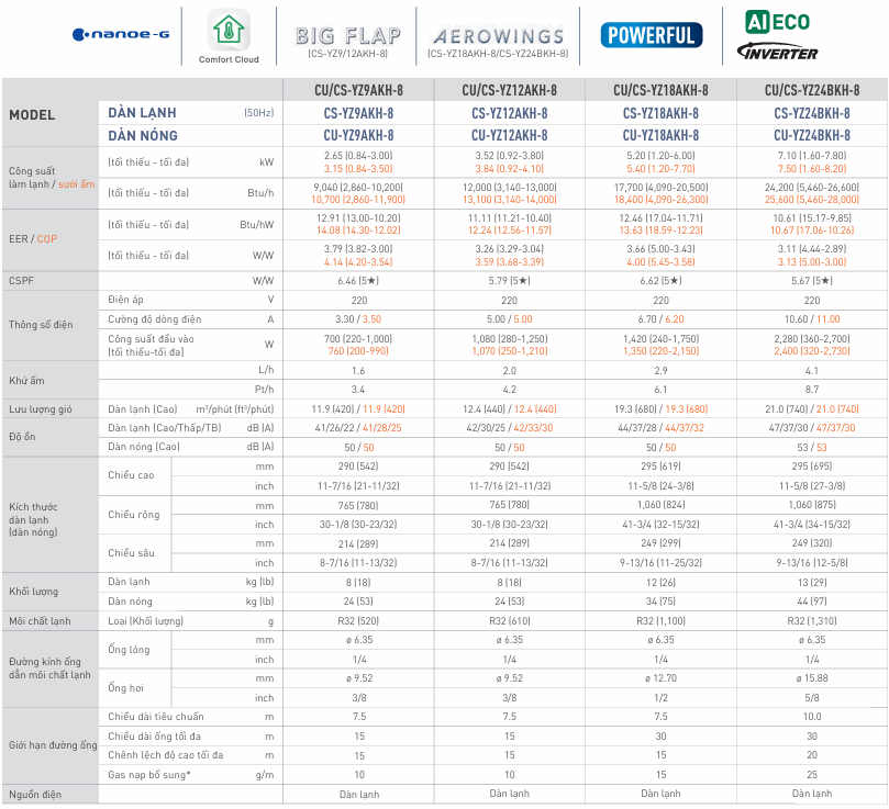 Điều hòa 2 chiều Panasonic Inverter tiêu chuẩn – YZ Series