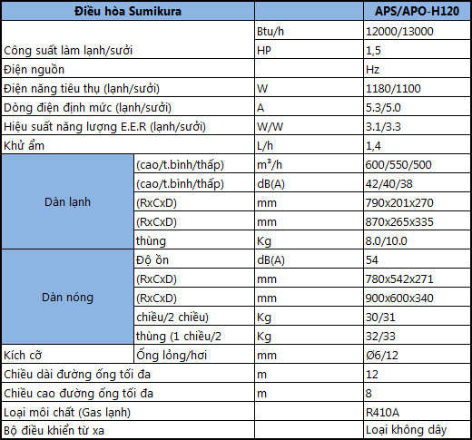 APS/APO-H120 Titan có công suất làm lạnh/sưởi 12000BTU vừa đủ để điều hòa không khí trong một căn phòng có diện tích dưới 20m2.