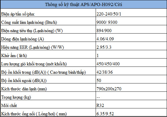APS/APO-H092/Citi này sử dụng môi chất lạnh R32 mới nhất hiện nay. Gas R32 đem đến hiệu suất làm lạnh cao hơn khoảng 1.6 lần so với gas R410A, gấp 6.1 lần so với gas R22, đồng nghĩa với việc tiết kiệm điện năng một cách đáng kể. Ngoài ra, gas R32 rất thân thiện với môi trường.