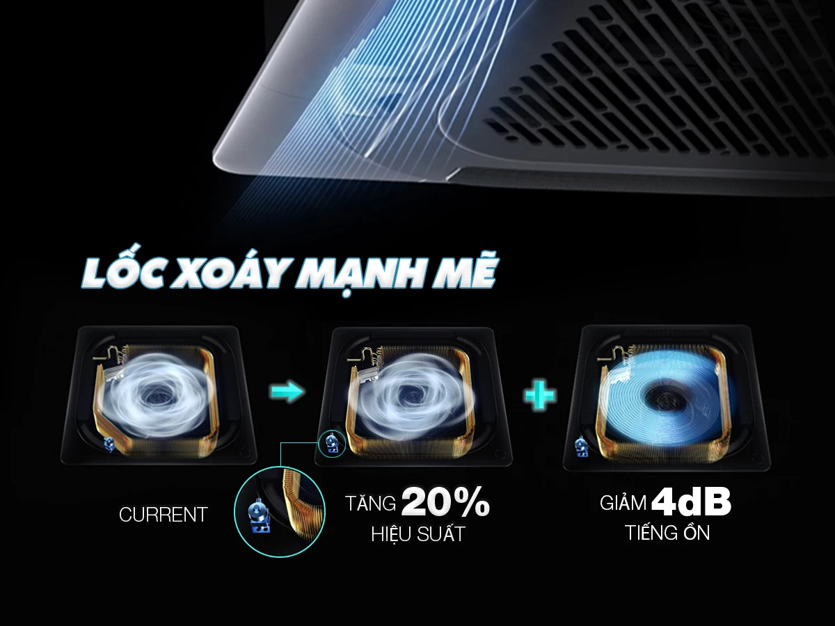 Cải tiến dàn bay hơi để tăng dung tích và kích thước bộ phận trao đổi nhiệt lên thêm 5%. Điểm cải tiến này không chỉ giúp quá trình tạo hơi lạnh diễn ra hiệu quả hơn, mà còn tạo điều kiện hình thành luồng hơi lạnh dạng lốc xoáy.