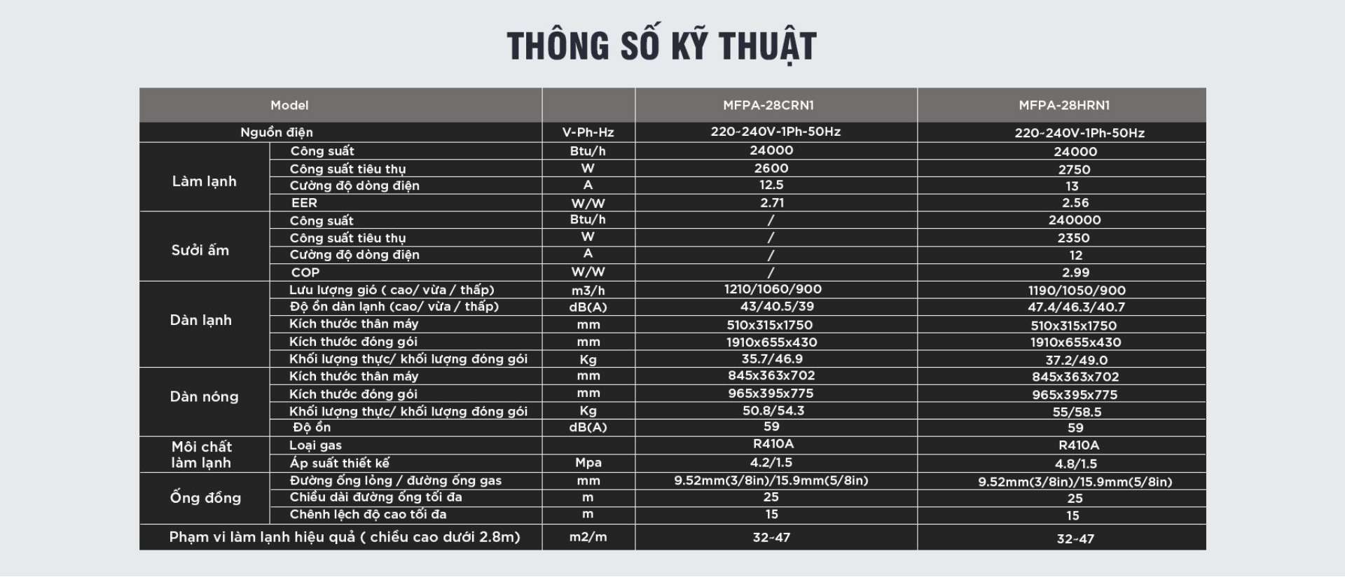 Điều hòa tủ đứng Midea 28000BTU MFPA-28CRN1 sử dụng môi chất mới gas R410a: Hiệu suất làm lạnh cao hơn 1.6 lần, thân thiện hơn với môi trường.