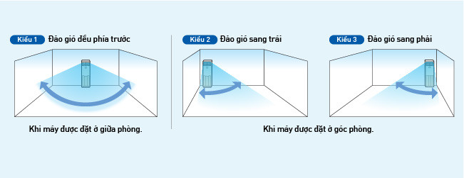 - Đảo gió tự động theo phương ngang (trái và phải): chức năng này tự động di chuyển cánh đảo gió sang 2 bên để phân phối gió khắp phòng.