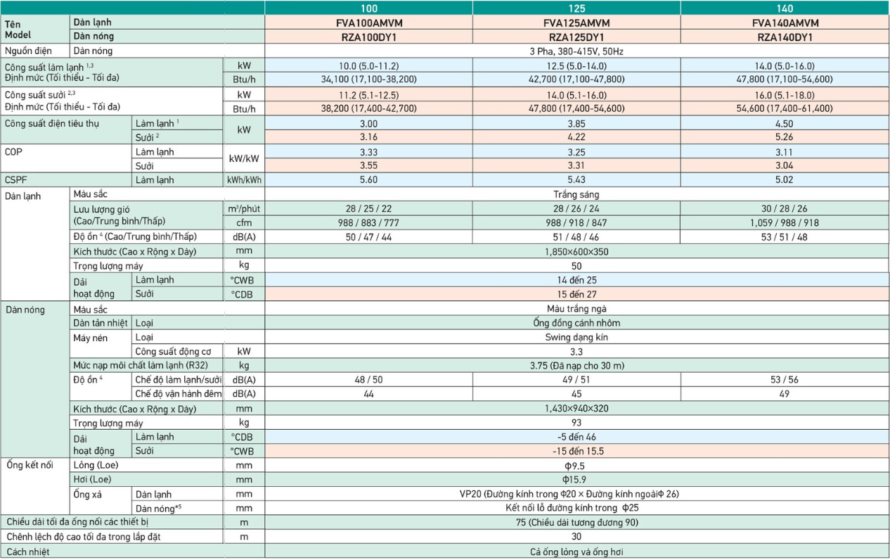 Với công suất điều hòa tủ đứng 48000BTU, FVA140AMVM/RZA140DY1 phù hợp lắp đặt cho phòng có diện tích nhỏ hơn 80m2
