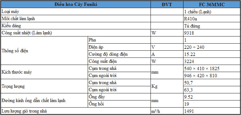 Mô tả chi tiết của điều hòa tủ đứng Funiki FC36MMC