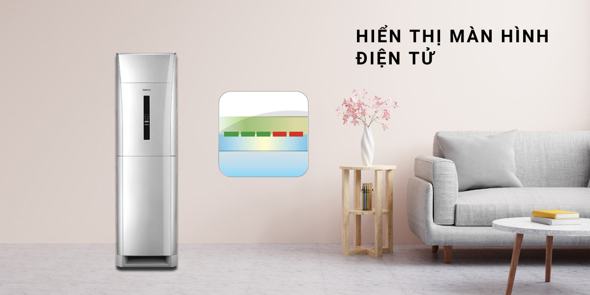 Là sản phẩm tủ đứng duy nhất Panasonic có 2 chiều và công nghệ Inverter tiết kiệm điện với công suất 24.600Btu phù hợp với phòng có diện tích từ 30-40m2.