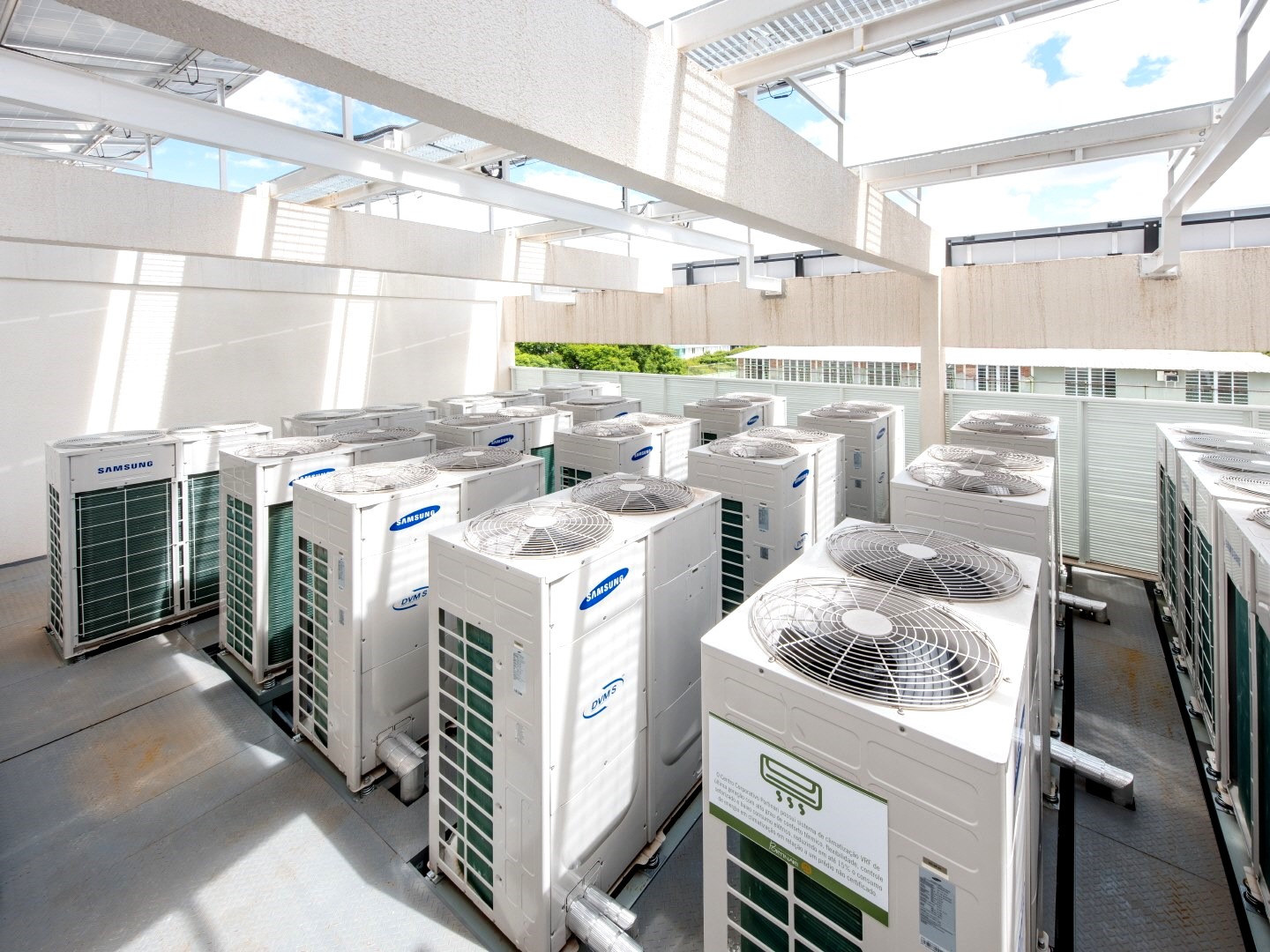 – Máy lạnh trung tâm có thể đặt trên tầng mái hay trong phòng kỹ thuật tầng hầm, các dàn trao đổi nhiệt được đặt trong các phòng điều hòa (thông thường là các loại dàn đặt trong trần giả và được phân phối không khí lạnh thông qua đường ống gió và các cửa thổi đặt trong trần), hệ thống đường ống nước lạnh phân phối cho các dàn trao đổi nhiệt được đi trong hộp kỹ thuật và trên trần giả vì vậy việc lắp đặt hệ thống không làm ảnh hưởng đến kết cấu kiến trúc của công trình. máy lạnh trung tâm đã đặt trên tầng mái hay trong phòng kỹ thuật