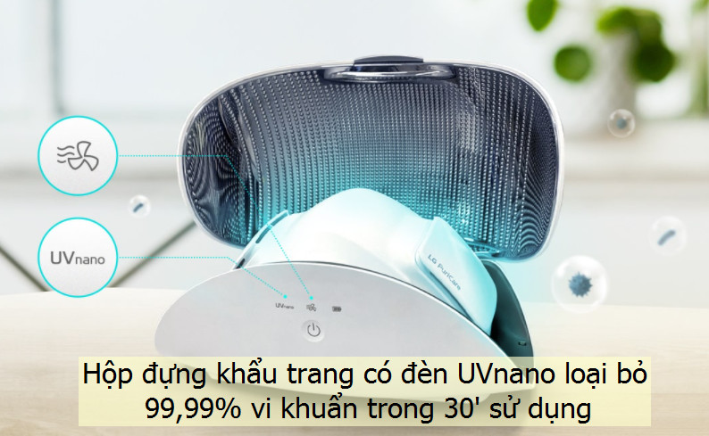 Khẩu trang lọc khí LG Puricare AP551AWFA sử dụng vật liệu silicon y tế đã được kiểm định an toàn cho sức khỏe người dùng. Để giữ vệ sinh khẩu trang lọc khí LG PuriCare, một chiếc hộp đựng khẩu trang là rất cần thiết. Hộp đựng giúp loại bỏ đến 99,99% vi khuẩn trong 30 phút bằng công nghệ UVnano.