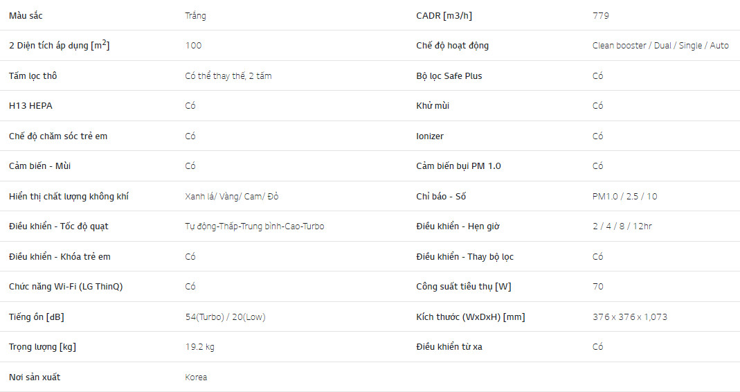 MÁY LỌC KHÔNG KHI LG PURICARE 2 TẦNG AS10GDWH0 (Safeplus)